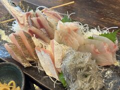 先日の土曜日伊豆の帰りに初めていきました。約20人待ちの行列ができていて結果40分待ちました。一番人気の刺身定食は限定20食で、とっくに売り切れ。同じく限定20食の本かます焼き定食を注文しました。本かますは当然朝どれなのでまずかろうわけがなく、ほかに天然ぶり刺身3キレとかなりの大きさのアジフライがついて千六百円なり。鮮度と質からみてかなり安い。小旅行好きならずとも、魚好きなら東京から定食目的のみでわざわざいつてももとはとれます。かますをだせる定食屋が都内にあったとしても、この鮮度のものは漁港でなくては無理。刺身定食を狙うなら開店時間前に行かないと売り切れます。