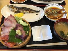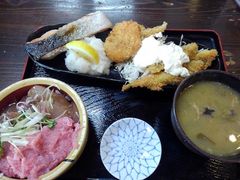海鮮丼に焼き魚、小鉢がついて1000円切りです。