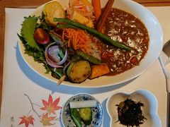 小山市高椅、やすらぎの森(市営墓園)北側で、店を構えている《自然薯の里》さんになります。自家菜園の無農薬野菜と特定農家の安心野菜、証明付小山ブランドの和牛をたっぷり、いただくことが出来ます。好んで注文する【カレーセット】は、野菜の旨味がしっかり溶け込んっ、とても優しい味がするお薦めの逸品です!他には肉増量の『ディナーセット』¥2,575円〜も◎です。
