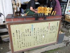 いももち1本300円、焼き団子1本150円、岩魚塩焼き500円、みそ田楽1本100円、栃餅(1皿2ヶ)550円、つきたて餅1皿550円など。