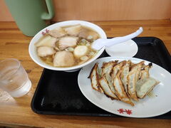 チャーシュー?とW餃子をいただきました。定番のような味で、美味しかったです。