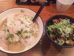 難波から徒歩で向かいました。四ツ橋筋、なにわ筋を越え、北堀江にありました。平日1930でしたがほぼ満席。豚×魚ラーメンとチャ―シュー丼を注文。スープはとろみはありませんが濃厚で麺とよく絡み美味しかったです。場所柄か女性ひとりや二人のお客さんもいらっしゃいました。