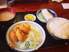 結城市を南北に行き交う県道20号線(岩井街道)の鹿窪工業団地入口交差点、南東にある店《日本一食堂 鹿窪店》さんになります。個人的に好きな昼の【牡蠣フライ定食】はどうしても外せない逸品です!