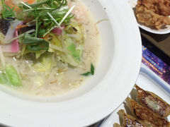 海藻麺入り豆乳スープちゃんぽんと餃子。