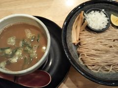 京都出張のランチで食べました。珍しい細麺のつけ麺で濃厚な鶏ベースのスープにつけていただきました。麺がキンキンに締めてあって美味しかったです。玉ねぎ微塵切りやすだち、黒七味で味変も楽しめ最後はスープを温め直してもらってからスープ割までして完食しました。