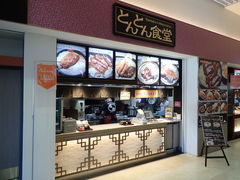 東名阪国道・御在所SA(上り)のフードコート内にあります。隣は「宮きしめん」と「とんとん食堂」になっています。このフードコートは、いつ行っても混み合っていますが、日曜の昼食時間帯に寄ったので空き席の争奪戦が厳しかった。もう少し落ち着いて食べられる環境だと良いのですが。