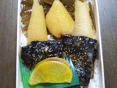 身欠き鰊は小骨も気にならないほど柔らかく煮付けられて、味付けは見た目ほどくどくはなくタレの滲みたご飯と頂くと美味しい。