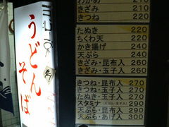 立ち食いのカウンター席だけの小さなお店ですが、一番安い「かけうどん」が160円からと激安で、量も多くて味もなかなかのもので、手軽な食事にちょうどよかったです。