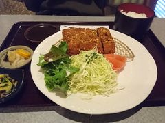 天文館通りのはずれの天文館公園の前にある黒豚料理のお店です。南九州旅行の最終日に天文館をぶらっとしたあと、せっかく鹿児島に来たので、最後は黒豚を食べようということになり、ちょっと遅めのお昼にランチをいただきました。あまりお腹がすいていなかったので、「黒豚さつま十二単衣かつランチセット」というのを注文しました。普通のトンカツ肉ではなく、しゃぶしゃぶ肉を十二単衣のように重ねて揚げたものです。しゃぶしゃぶ肉なので、ガッツリした感じではなく、ジューシーでふわっとした感じの食感です。お値段も黒豚の割に880円と手頃で、リサーチもせずに入ったお店の割に、かなりの満足感でした。