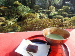 庭園を眺めつつ、抹茶をいただけるところがありました。
