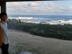 部屋の窓越しの太平洋の絶景、窓には中桟がないので屋外と繋がっているような気分である