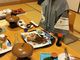 朝食、サンマの干物、とろろ、イセエビの頭で出汁を取った味噌汁などが並ぶ
