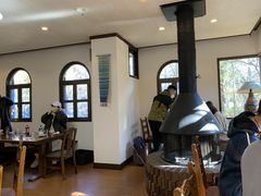 もう一枚アップしときますね。店内は、こんな感じです。ストーブ、あります。冬に来店するのも良いかもです。いい感じです。