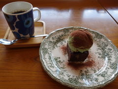 注文したのは、ドリップコーヒーとショコラケーキ・ピスタチオアイス添え。