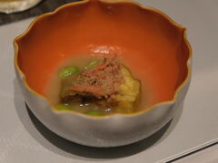 丸茄子の冷やし揚げ浸し蟹身と枝豆