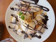 今日は、バナナチョコレートパンケーキにしてみました。パンケーキは少し甘くて、チョコとバナナとの相性が良くて、美味しかったです。