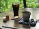 【cafe kaeru】お外の席でプリンとアイスコーヒー