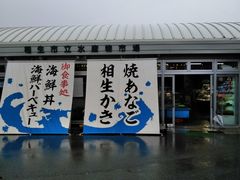 相生の魚稚といえば、海産物販売とりわけ牡蠣のバーベキュー等で有名だ。ただし訪問当日は豪雨のため、外でバーベキューをやっている人は誰もいない。天候を考えると立ち寄りをパスしたいほどだったが、屋内なので入ってみた。中は思っていたよりは狭く、乾物を買って車に引き上げた。
