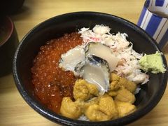観光客に地元でも愛されるお店です、年代を感じたお店でしたが、いくらがびっしりと、嬉しい限りでした、他に三色丼に色々魅力な目に―がありました。