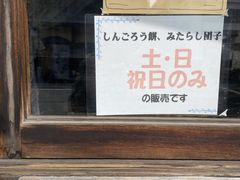 通りをぶらぶら歩いていたら、「土日限定 しんごろう餅」の看板。