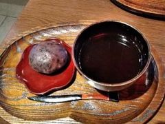 写真のおはぎとほうじ茶のセットは320円。つぶあんで美味しくいただきました。
