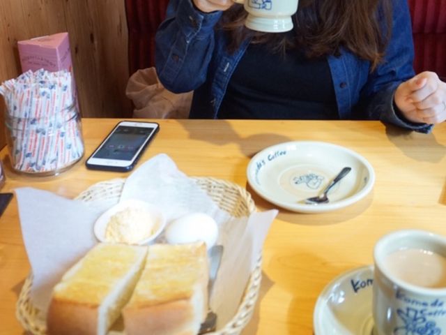 コメダ珈琲でコーヒーとサンドイッチを注文。サンドイッチは、かつサンドにしました。カツが大きくてボリュームがあります。