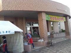 天気が良いので家族でさとらんどに行きました。ここは体験型施設で、バターなどの手作り体験をしたり、外にいる羊たちに餌をあげたりして遊びました。この売店で、ソフトクリームを食べて休憩しました。