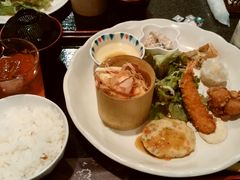 プレートランチをいただきました。豆腐と豆腐ハンバーグが美味でした!ちいさなキッシュや豆のサラダがついていて、デザートも。お得でした。