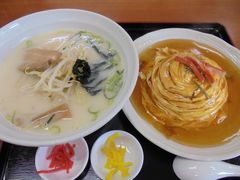 久しぶりに入店しました。以前は店内喫煙可能でしたが、現在は禁煙になっているので嫌煙家としてはありがたい。オーダーしたのは、豚骨ラーメンと天津飯のセット。天津飯はあんが多く、少し甘めだ。豚骨ラーメンは癖がなくいい味をしている。麺が細めなので、豚骨スープが麺に絡んで美味しい。ランチタイム時はコーヒーと、またはジャスミン茶がセルフサービスに。お得なランチにうれしいサービス付きだ。