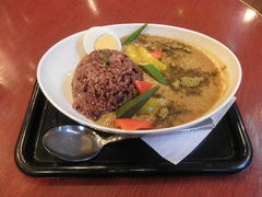同志社大学との共同開発による「老化防止期待カレー」というコピーで、スパイスが老化原因物質であるAGEを抑制することが紹介されていました。