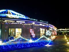 カフェは軽食メニューが少なかったが、隣がお土産処になっているので、待っている間にあれこれ見られるのが楽しい。冬は夕方からライトアップされ、なかなか綺麗だった。
