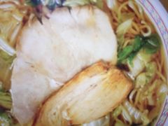 イオンモ−ルのフ−ドコ−トにあります。細めのストレ−ト麺にチャシュ−、白菜たっぷりで(コーンをトッピング)あっさりとしたス−プです、無料の豆板醤入りニラを入れるとピリッとした味になり二度美味しいです。