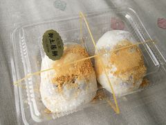 御土居餅「光悦堂」(おどいもち「こうえつどう」)で、二度蒸したもち米に甘煮の赤えんどうとこし餡を包んできな粉をかけた餅菓子。1個140円だが、2個から売っています。。