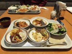 こちらの一階のレストランではランチバイキングあり、メインを選んで後は