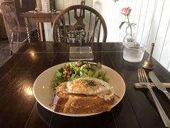 クロックマダム とても美味しくてサラダも野菜たっぷり、クルミがアクセントになってて贅沢な感じでした。