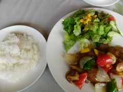 なサラダに絶妙な味付けの甘酢炒めはとても美味しかったです。
