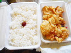480円の 旨い 鶏天弁当 ここは米も旨いよーー