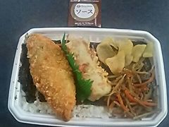 仕事の都合で、お店の前を通りかかったので、定番ですが、のり弁当をお持ち帰りで購入しました。当たり前ですが、安いです。