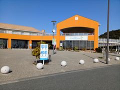 道の駅ではとても珍しいデザインの建物とオレンジ色が ひときわ目立ちます。