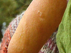 名物のチーかまドック。「ときどき、無性にたべたくなる」と地元の人が話す、ソウルフード。チーかまが、ほんのり生地で包まれて、揚げられています。1本150円。オススメします。