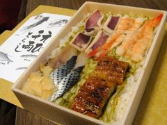 こはだ・うなぎの蒲焼・蒸し海老・いかの一夜干しの4種類、どれも美味ですね。