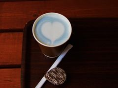 妻が「ネモフィラブルーラテ」と、私が「ネモフィラブルーティー」を注文