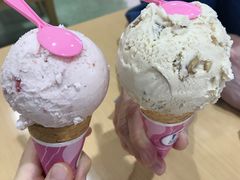 アイスクリームの日の次の日に伺いました。次の日ということで、お店は空いていたのですが、2種類の試食をさせてくださいました。とても気さくな店員さんで、感動でした。やっぱり美味しいですね〜。