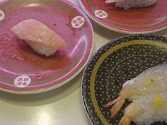 大半が一皿100円の回転寿司です。ネタは小振りですが味はまずまずだと思います。メニューもサイドメニューを含めて比較的種類も多く、アルコールを注文しなければ、千円ちょっとの勘定で済みます。ただ、カウンターで好みを握って貰っても3〜4千円程度で済む鮨屋も三島にはあり、この3、4倍の値段の差をどう考えるかです。回転寿司は別のものと考えれば、十分に選択候補に挙げていいお店だと思います。