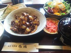 こちら、三重に本店があるそうなのですが、現地でファンが多いというコロッケも食べられるこちらのお得な御膳をチョイスしました。スキ煮のような牛肉と玉ねぎは程よい甘みと酸味でごはんが進みます。お肉の厚さも丁度良く、弾力はありますが柔らかく、サラダや紅ショウガもついているので、重た過ぎずさっぱりと頂けます。コロッケもサクサクで美味しかった。