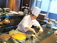 オムレツ。ポーチドエッグ。パンケーキ。ハムステーキなど目の前で1人1人丁寧に調理して手渡してくださいます。見ていてとっても楽しいし、食べるのがワクワクします。サラダなどのもりつけも、とってもきれいです。そして、とてもおいしかった