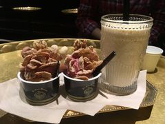砂糖不使用のジェラートがいただけるお店で、ナッツなども量り売りしています。