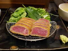 渋谷駅東にある人気の牛カツ屋。近くの他店よりは行列しない。店内は牛カツ屋にしてはオシャレで女性向け。
