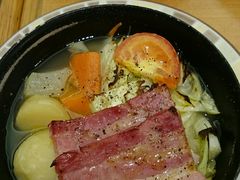 冬メニューのポトフをいただきました。野菜たっぷり、ベーコンは厚切りで食べごたえがあります。