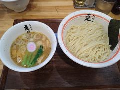 人形町でいつも行列で諦めてた兎屋さんに人が並んでないのを見て利用しました。食券を買うとすぐに入店できてラッキーでした。出てきたつけ麺は並盛でもかなりのボリュームで食べごたえありました。具材はチャーシューはスープに負けじと味が染み込んでいたので麺と一緒に食べると美味かったです。個人的にはスープが少し塩っぱかったですがスープ割すると激変の美味しさだったので次回はラーメンかな。